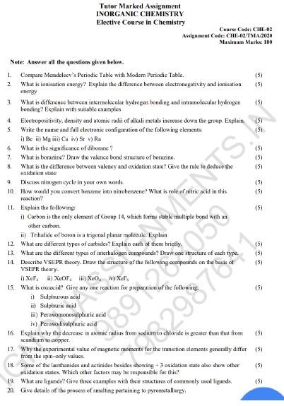| Title Name | IGNOU CHE-02 SOLVED ASSIGNMENT 2020 ENGLISH MEDIUM |