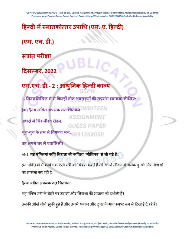 | Product | IGNOU MHD-02 Previous Year Solved Question Paper (Dec-2022) Hindi Medium |