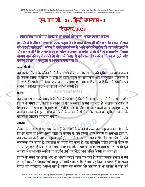 Get IGNOU MHD-15 Previous Year Solved Question Paper (Dec-2023) Hindi Medium Soft Copy ready for Download in PDF (For Dec-2023 Sessions)